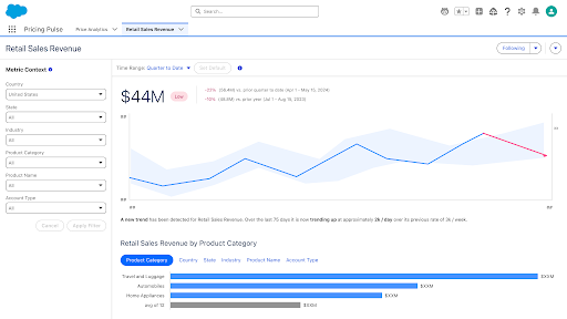 Get intuitive answers around set goals and thresholds from Tableau Pulse. Tableau Pulse uses frontier LLMs to detect patterns, highlight risks, and now, explain changes across multiple metrics relative to their set goals and thresholds. In addition to getting pacing context from the individual metric, business users can now ask questions and get responses, enriched with these insights.