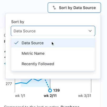 Organize and evaluate your metrics with greater relevance in Slack digests using grouping and sorting. Settings in the 'Following' tab will be reflected in Slack digests.