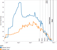 Soon, we became very interested in the time-based behavior of defects during a release as we experimented with different approaches to software development and release management. We wanted to graph the number of open bugs for any day during the release and see how events like stabilization periods were influencing the bugs.