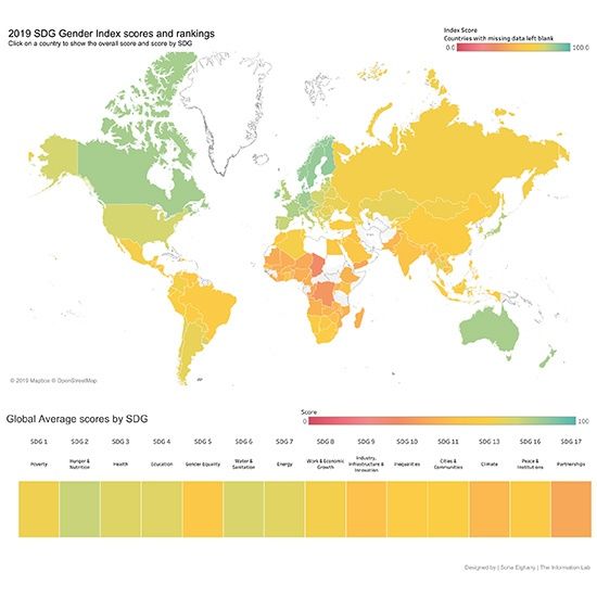 In 2015, world leaders from 193 countries committed to achieving gender equality by 2030 for every girl and every woman when they signed on to the United Nations Sustainable Development Goals (SDGs). On June 3 at the 2019 Women Deliver conference, Tableau Foundation partner EM2030 released the SDG Gender Index, the most comprehensive accountability tool available to explore gender equality in 129 countries aligned to the UN’s SDGs.