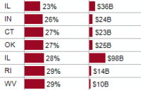 Although the formal recession of 2008 and 2009 has ended, the reverberations remain. Mike Shedlock has devoted himself to describing those reverberations and why he thinks they will continue in his blog, Mish's Global Economic Analysis. On Sunday, he published the following viz, which shows the extreme funding crises that is developing in the nations public pension funds.