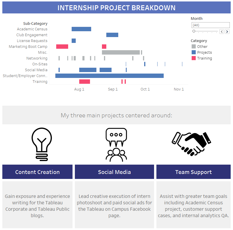 Last summer, I landed a 10-week marketing internship here at Tableau on the Academic Programs team. I was tasked with projects like increasing engagement on social media, creating content for different channels, and leading presentations at universities.