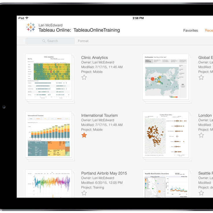 Experience enhancements: We’ve improved all the seemingly little things that add up and slow you down. With the new app, your data is the star of the experience; the user interface gets out of the way. Quickly page through your favorite vizzes with a swipe. Tap once to go full-screen. Switch between Tableau Server sites with a couple of taps. Favorite (and unfavorite) content with a tap. Connect to recently-visited Tableau servers with a tap—the list goes on and on!
