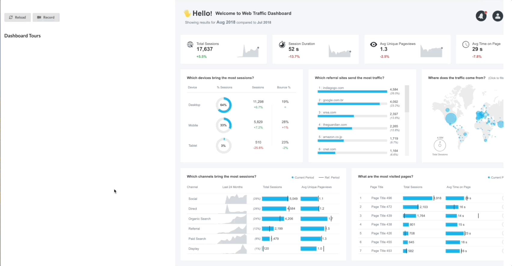 And if a few more minutes can be spared, tour guides can continue refining their tours by recording additional steps, tweaking content, or re-generating tour content following their own custom criteria. And because dashboard tours are so quick and easy to create, tour guides can actually afford the time to create not one but multiple tours for the same dashboard if they so wish, each tailored to different dashboard user audiences and needs.