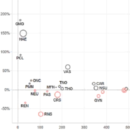 • The variance from expected hospital activity for a number of specialties (see dashboard below)