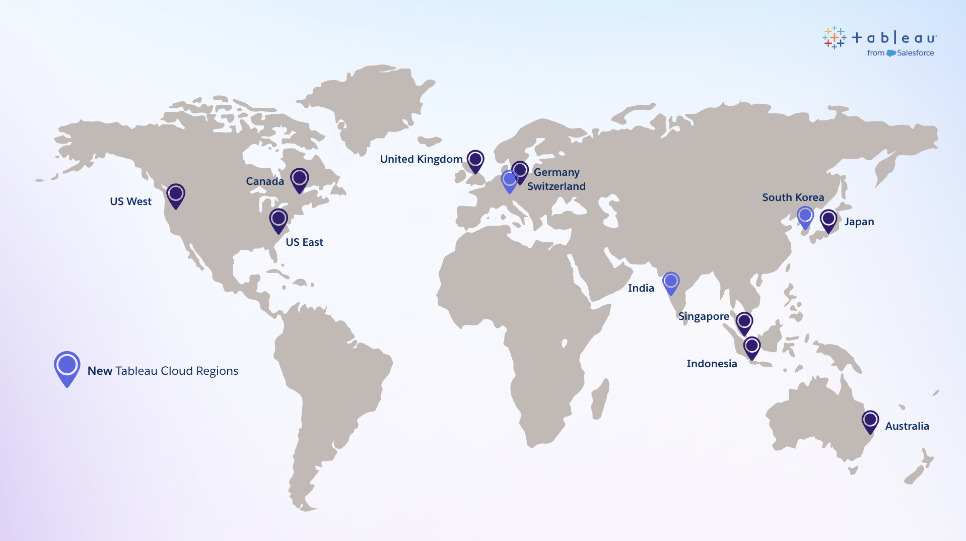 • Regional expansion: Tableau Cloud is now available on the Hyperforce Germany region, the most requested European region, as well as the Singapore region and the Indonesia region for customers in Asia.