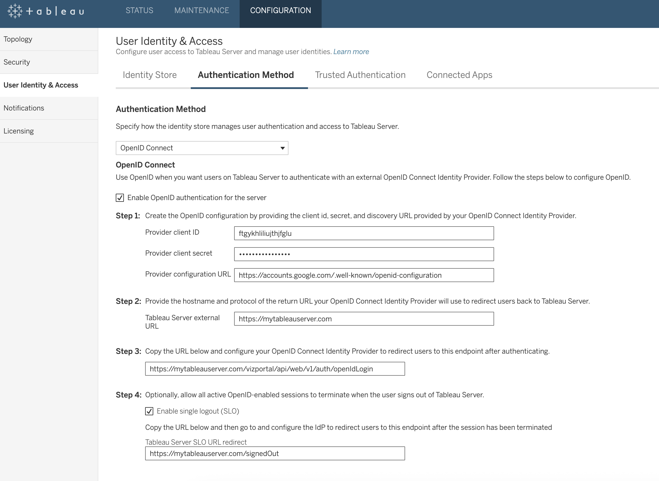 Al configurar OpenID Connect, los administradores de Tableau Server ahora pueden habilitar el cierre de sesión único (SLO) para brindar una experiencia más positiva a los usuarios corporativos y mejorar la seguridad en toda la organización. Cuando está habilitado, los usuarios que cierren sesión en Tableau Server también cerrarán sesión en su proveedor de identidad (IdP) y en las aplicaciones asociadas. Esto elimina el riesgo de dejar sesiones abiertas y del secuestro de sesiones.