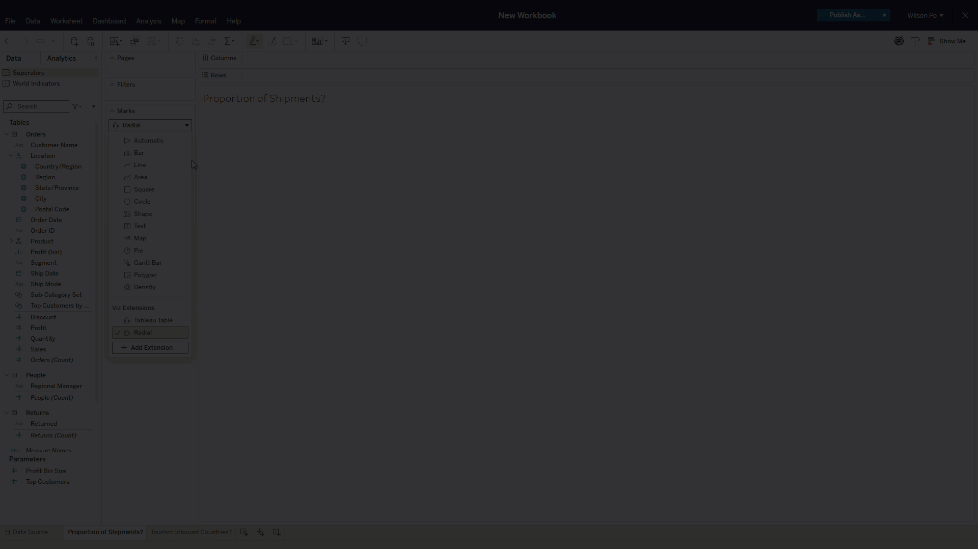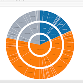 Cree fácilmente gráficos atractivos de circulares y de anillos para visualizar las relaciones entre las partes y el todo. Esta nueva extensión de visualización se puede agregar al libro de trabajo directamente en el menú desplegable de la tarjeta de marcas o mediante la opción Mostrarme. Arrastre y suelte para visualizar los datos en formatos radiales, populares entre las partes interesadas. Estos les permiten comprender las relaciones jerárquicas en Tableau Desktop, Tableau Cloud, Tableau Server y Tableau Public.