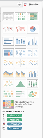 Anteriormente disponible en Tableau Cloud, los usuarios de Tableau Server ahora pueden simplificar el análisis de datos con una experiencia actualizada de Mostrarme. Al abrir Mostrarme, accederá a una visualización de sus datos con solo algunos clics. Todos los tipos de visualización están disponibles de forma predeterminada. Esto le permite seleccionar los campos que desee o dejar que Tableau lo guíe para comenzar.