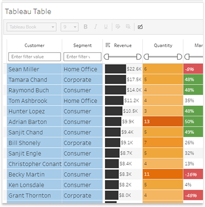 Obtenga mayor flexibilidad y control al crear visualizaciones con las extensiones actualizadas de Sankey y tablas. Se incorporaron mejoras que facilitan la experiencia del usuario, lo que incluye etiquetas Sankey más completas y controles de asignación de colores. En Tablas, se mejoró la experiencia de filtrado de columnas y es posible personalizar la visualización de valores nulos en toda la tabla de una sola vez. Estas mejoras estarán disponibles en Tableau Desktop, Tableau Cloud, Tableau Server y Tableau Public.