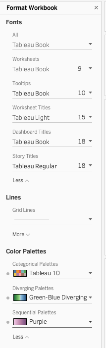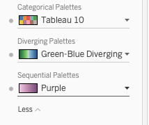 Garantice la coherencia de color en todo su libro de trabajo con la nueva configuración de paletas. Ahora, los creadores pueden configurar las paletas de colores predeterminadas (categóricas, divergentes y secuenciales) una sola vez para aplicar un estilo uniforme en todas sus visualizaciones y dashboards. Esto permite ahorrar tiempo y esfuerzo. Disponible en Tableau Desktop, Tableau Cloud y la creación web de Tableau Server.