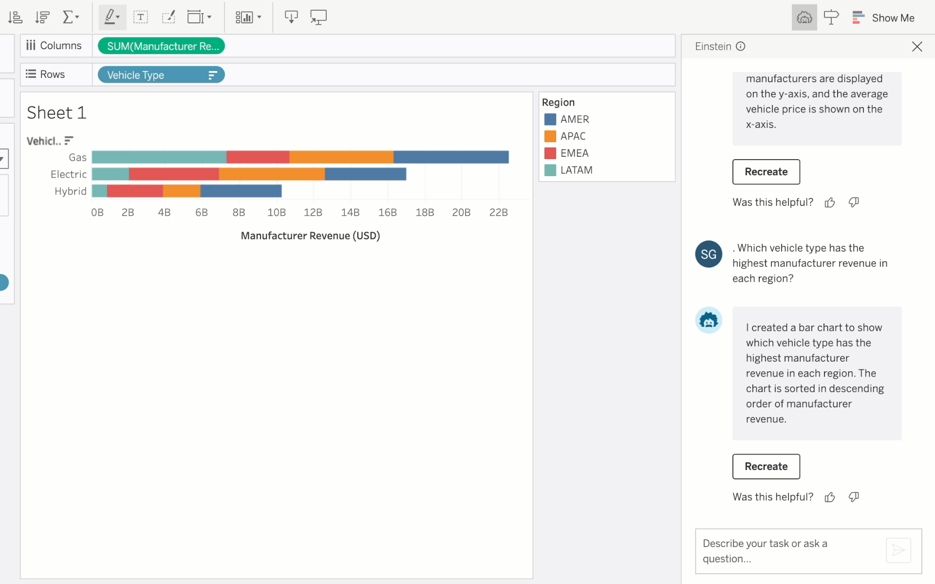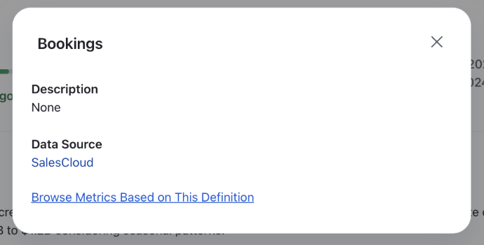 Mejore la calidad y la relevancia de la información generada por IA al proporcionar un contexto empresarial más profundo a Tableau Agent. El agente ahora aprovecha las descripciones de campos de su catálogo de datos y va más allá de los metadatos básicos para proporcionar respuestas más precisas y significativas.