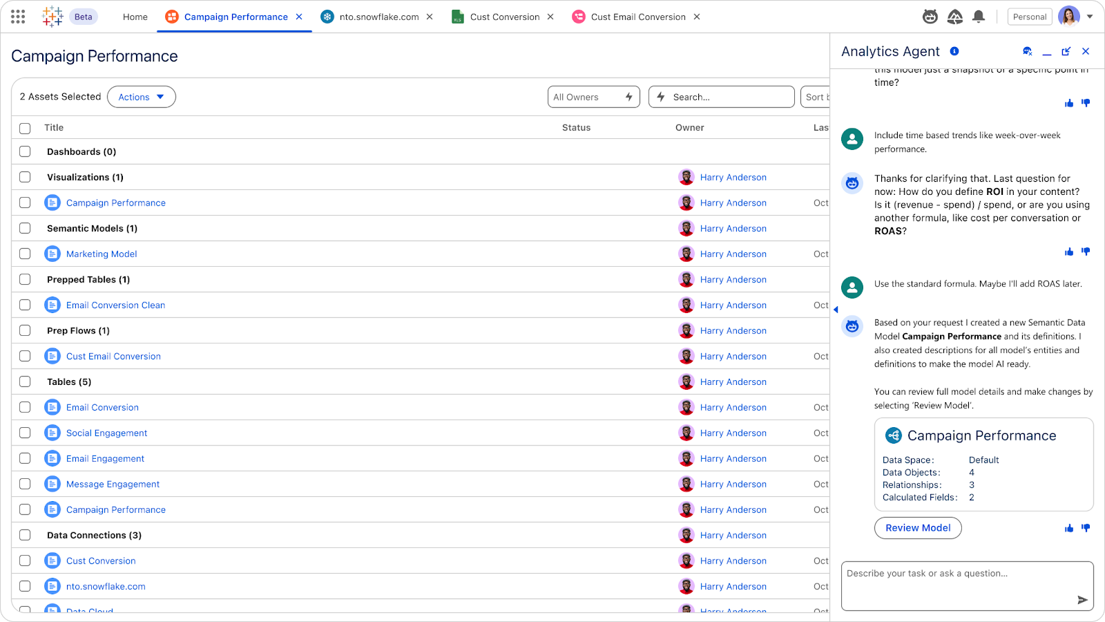 Empower customers with trusted, cross-cloud insights. Ask natural language questions aout data in the C360 semantic data model to gain trusted, cross-cloud insights.