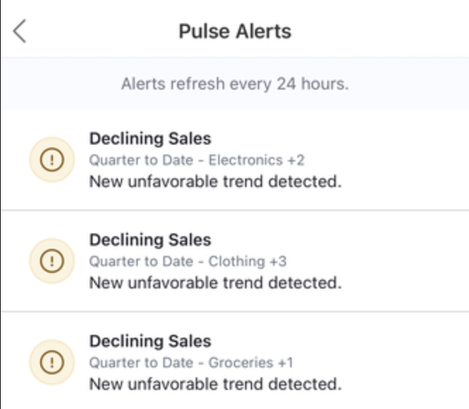 Get important Tableau Pulse alerts on the go without running the Tableau mobile app in the background. With mobile push notifications from Tableau Pulse, business users can better track important updates in real time, wherever they are.
