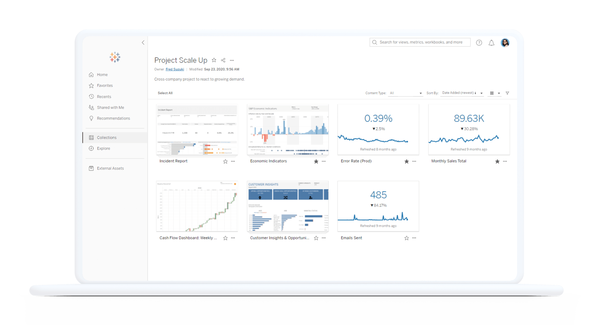 Crea y escala la arquitectura de datos a tu manera con análisis y modelos reutilizables. Además, ahora podrás ahorrar tiempo y dinero, ya que no tendrás que volver a configurar servidores, gestionar actualizaciones de software ni ajustar la capacidad del hardware. Con Tableau, también es posible descubrir, compartir, colaborar y explorar datos desde el dispositivo móvil, la tablet o la computadora, lo que potencia al máximo el trabajo en equipo. Crea y escala fácilmente los análisis más importantes sin perder el control de las capacidades de Advanced Management, que ofrecen escalabilidad total, eficiencia óptima y seguridad simplificada. Crea una definición estándar de tus datos para ampliar la información y el análisis con la capa de métricas de Tableau Pulse. Obtén acceso a aplicaciones nativas para impulsar el análisis con aceleradores, conectores, extensiones y mucho más.