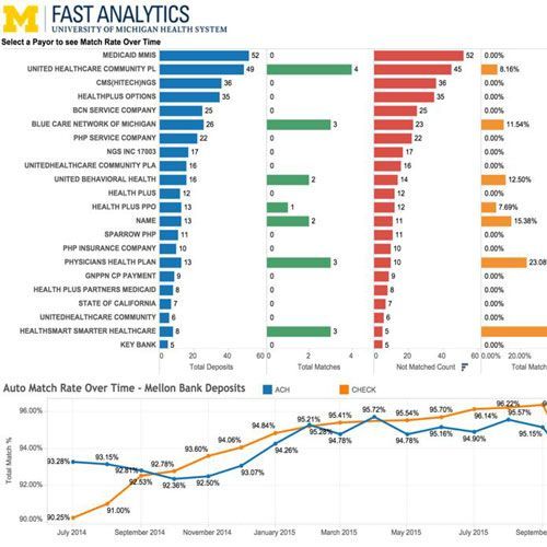 Michigan Medicine is home to one of the largest health care complexes in the world, with three hospitals, 40 outpatient hospitals, and more than 140 clinics. Michigan Medicine’s Fast Analytics team, part of the Revenue Cycle Management Department, serves the data needs of over 30 internal groups. With Tableau, these 30 teams are able to allocate resources more efficiently—what was siloed information is now accessible, informing faster decision-making across the enterprise.