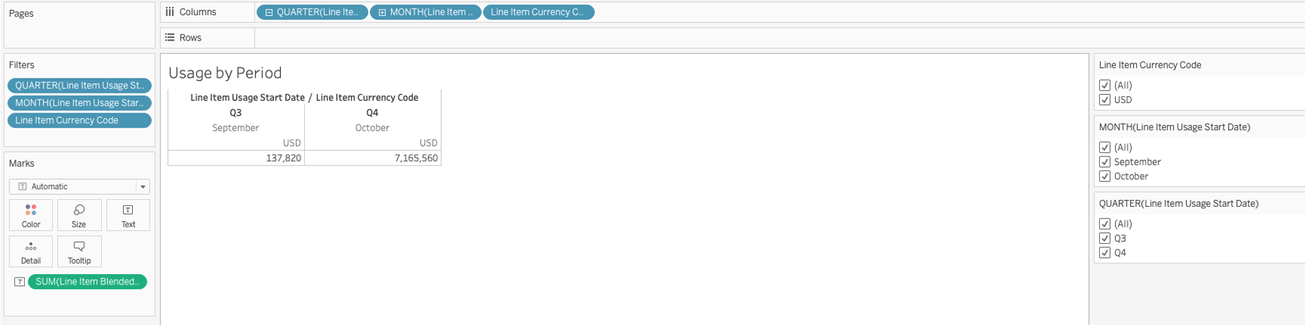 AWS Cloud Cost and Usage Data in Tableau