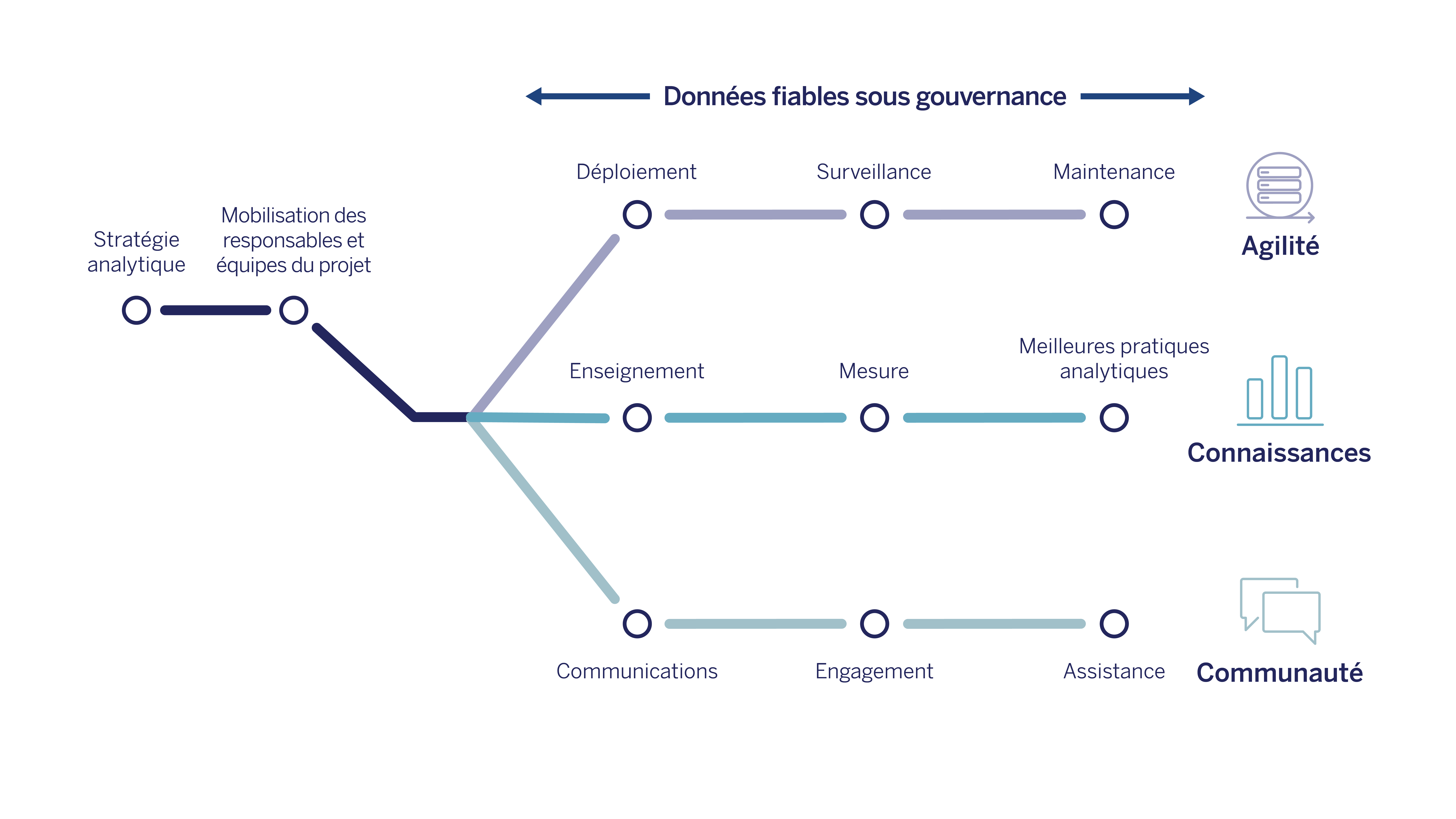 Nous travaillons avec vous pour comprendre vos objectifs opérationnels et élaborer un plan de déploiement de Tableau qui vous aide à les atteindre.