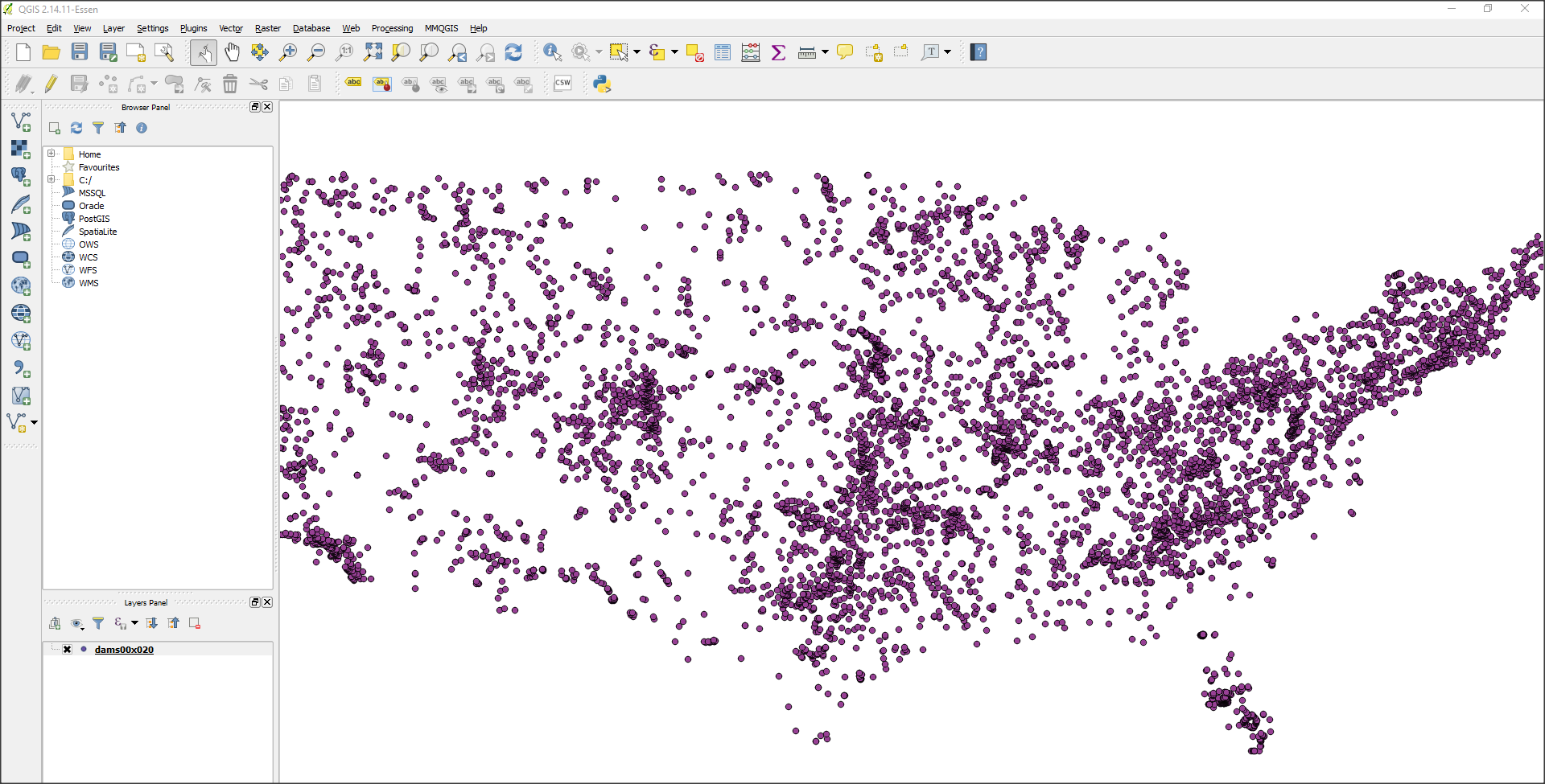 Dustin Cabral is a prolific vizzer and blogger at DustyData, and his recent blog post on mapping dams in the US is used here with his permission.