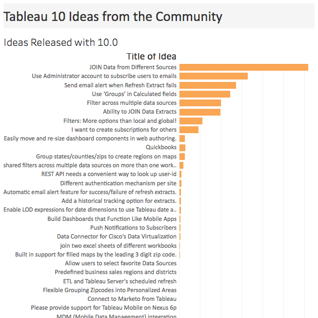 Tableau 10 compte énormément de nouvelles fonctionnalités, et bon nombre d'entre elles sont le fruit de suggestions publiées dans le forum des idées.