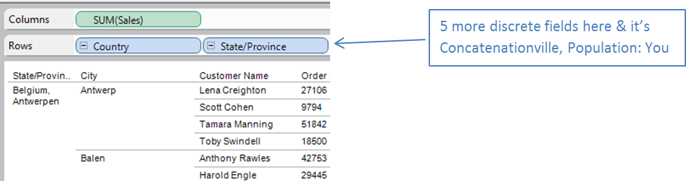 Here at Tableau, we like to be helpful. As part of that, we have built our tools to steer you toward visual analytics best practices in subtle ways—and sometimes in not-so-subtle ways. Header concatenation is one of those less-subtle examples.
