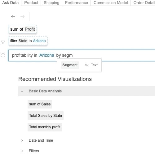 アナリストは多種多様なデータセットを読み込み、地理的情報や時間などの共有ディメンションを持つ共通の表に関連付けることで、分析上の高度な疑問を簡単に解決できます。 Tableau では、参照元のデータモデルの活用方法について分析上のアドバイスが提供されます。
