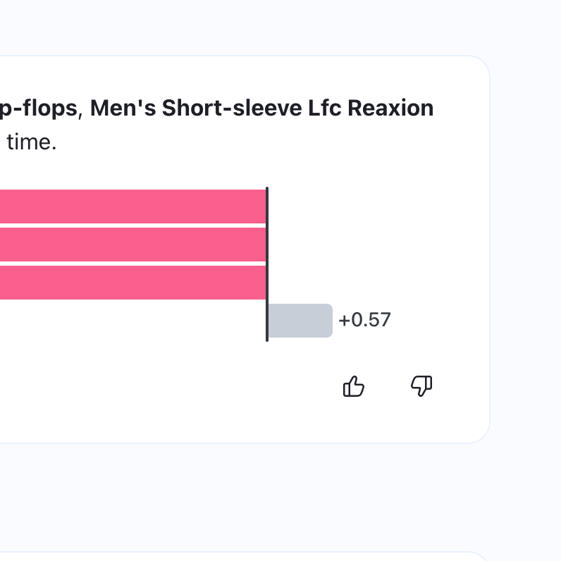 どのインサイトが役に立つかを Pulse に教えて、ユーザーエクスペリエンスを向上させましょう。インサイトのパーソナライズされたランキングの機能により、良い悪いのフィードバックに応じて最初に表示されるインサイトが決まります。関心や希望に合わせたインサイトが取得できるため、ダイジェストやホームページ、メトリクスの詳細ページなどで、さまざまなワークフローの全体的なユーザーエクスペリエンスが向上します。
