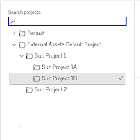 Tableau プロジェクトの切り替えが一層スピーディになりました。VizPortal のインターフェイスに、オプションのナビゲーションスタイルとしてプロジェクトツリーのビューが追加されました。このビューは既定で使用可能になっており、数多くのプロジェクトを階層構造でまとめているユーザーでも、Tableau Cloud、Server、Desktop、Public でプロジェクトを簡単に探すことができます。