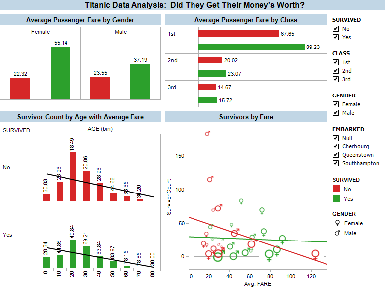 Here’s one of the visualizations created at the Business Analysis Olympiad, on the survival rates of the Titanic:
