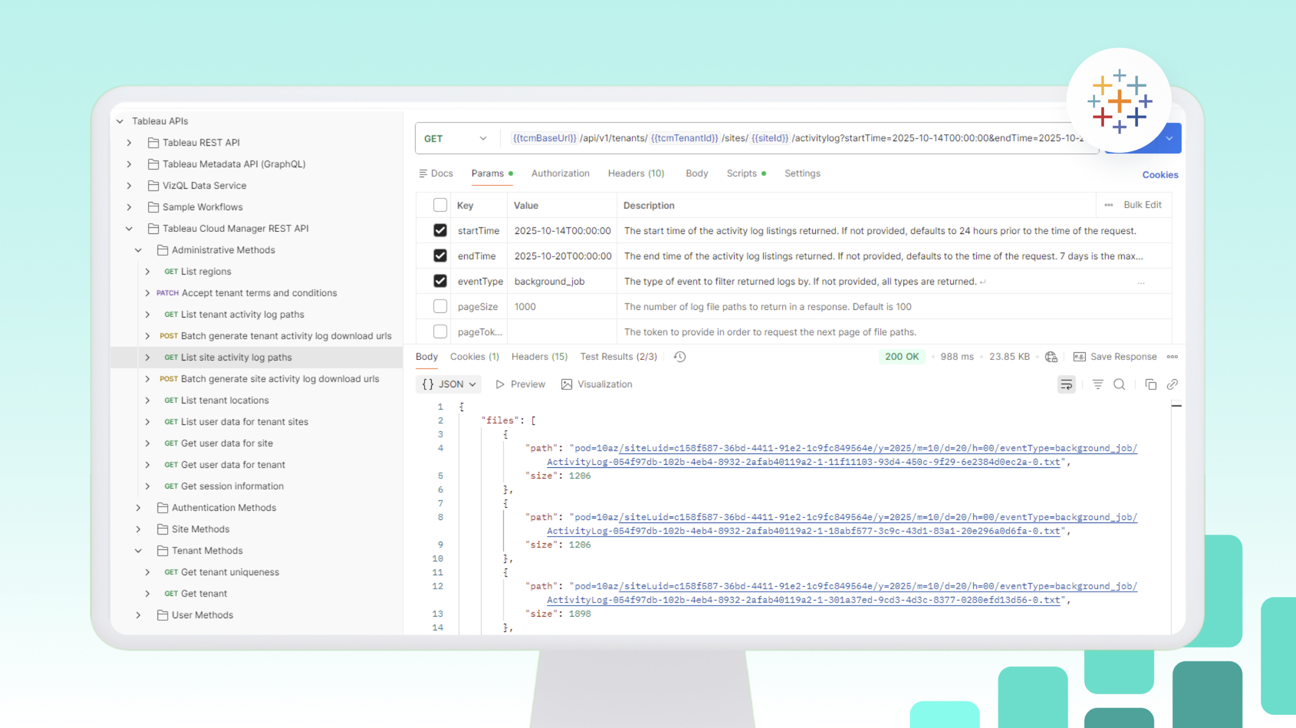 Accessible via new endpoints in Tableau Cloud Manager (TCM), the Platform Data API provides a central, unified way to retrieve event log data from your entire Tableau Cloud deployment. Want to see who logged into TCM to create a new site? There’s auditing for that. How about a permissions change someone made to their workbook? You can pull that data, too. What about monitoring extract refreshes? We’ve got you covered (including the ones that run on Bridge)!