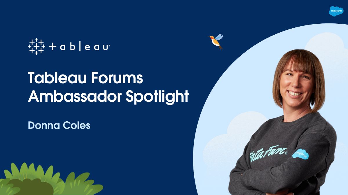 Tableau Forums Ambassador, Donna Coles has been a Tableau User since 2012 and shortly after turned to the Tableau Forums for help. Read more about Donna's journey in this blog post.